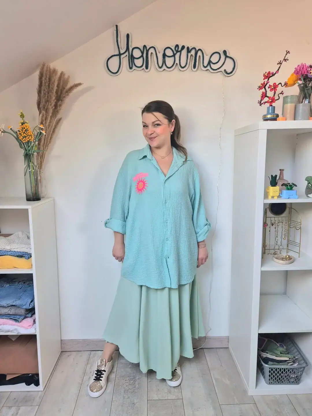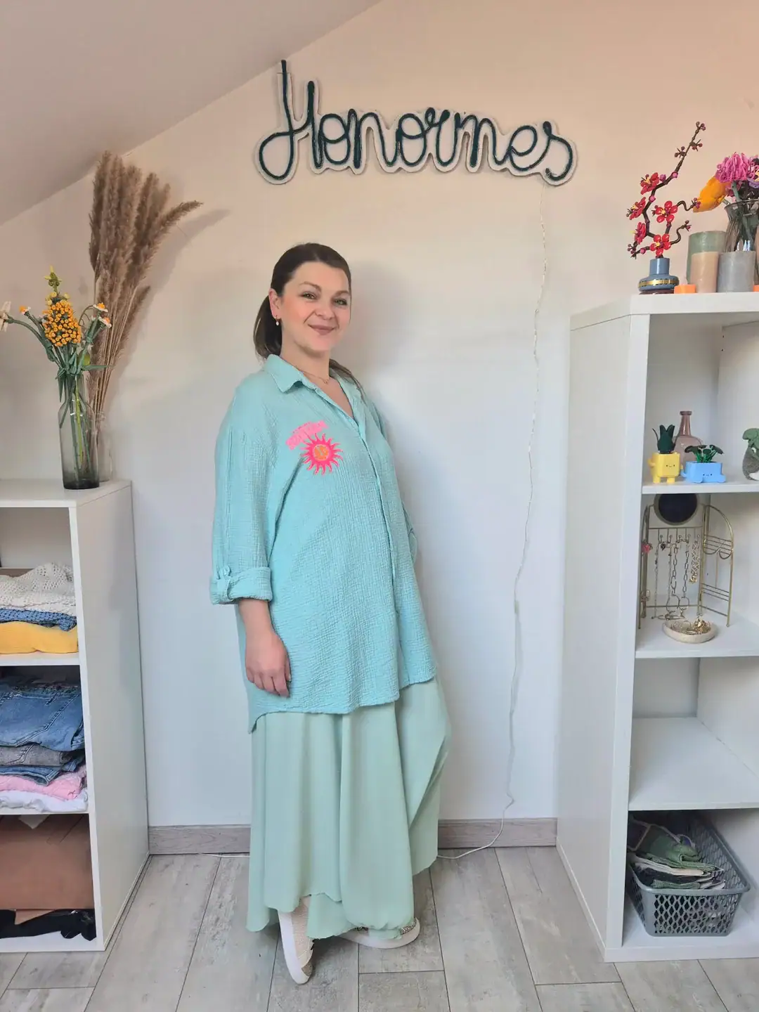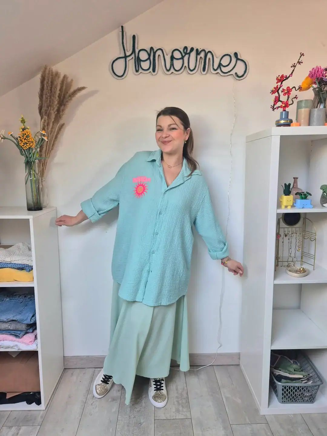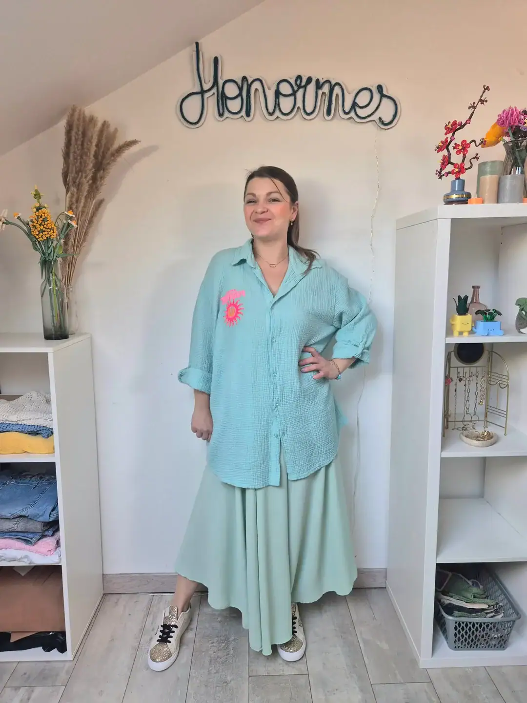 Apportez une touche lumineuse et tendance à votre dressing avec cette chemise en gaze de coton pour femme grande taille, alliant confort, légèreté et style affirmé. Confectionnée dans une matière douce et respirante, cette chemise est idéale pour toutes les saisons.