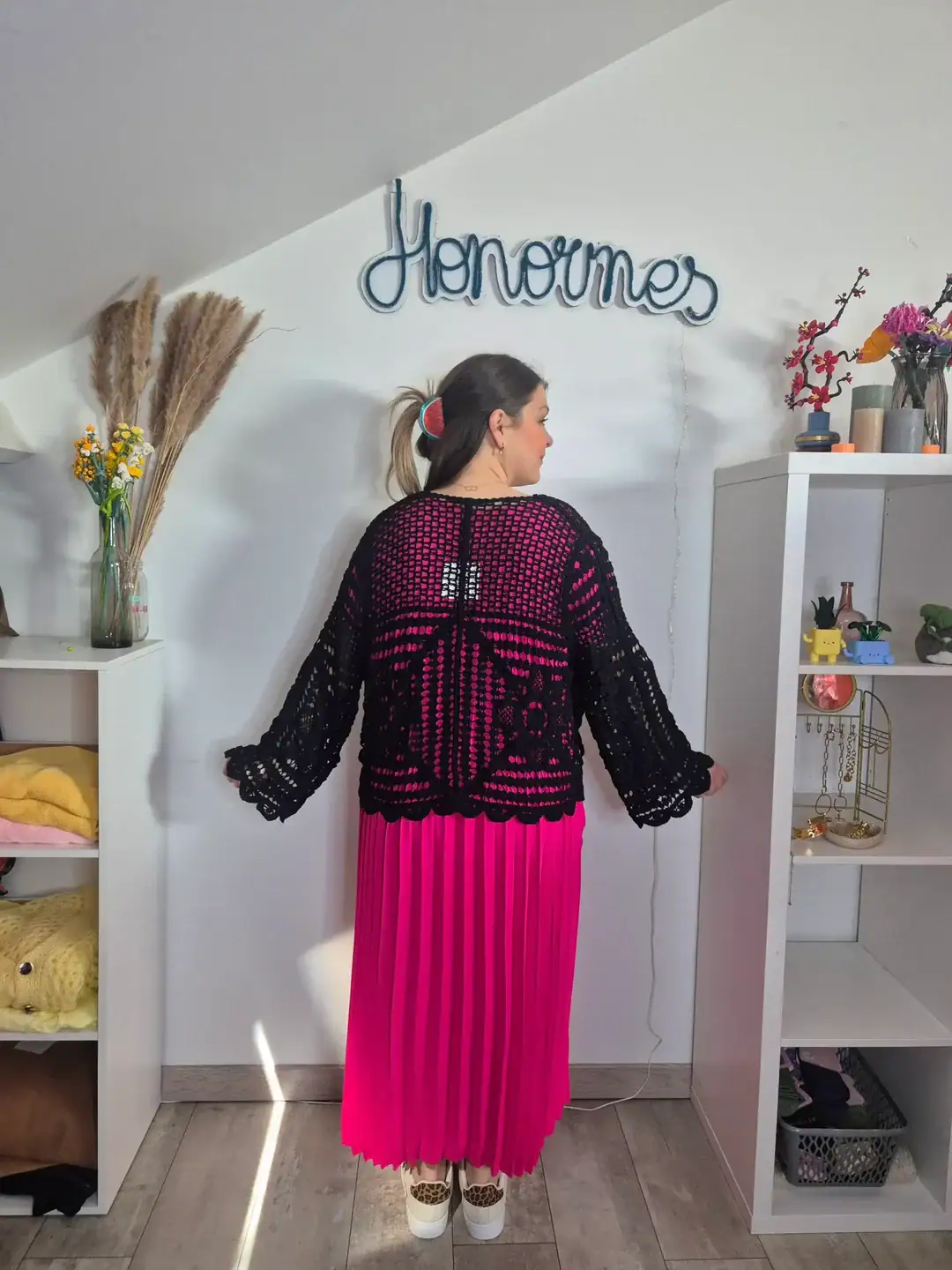 Ajoutez une touche bohème et élégante à votre garde-robe avec ce superbe gilet en crochet, conçu spécialement pour les femmes grande taille. Ce gilet est entièrement confectionné en crochet avec des motifs délicats, offrant un style aérien et léger. Les manches longues évasées apportent une allure sophistiquée tout en assurant un confort optimal.