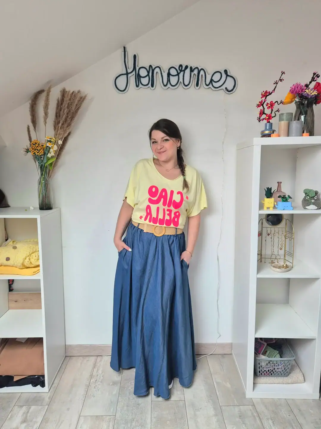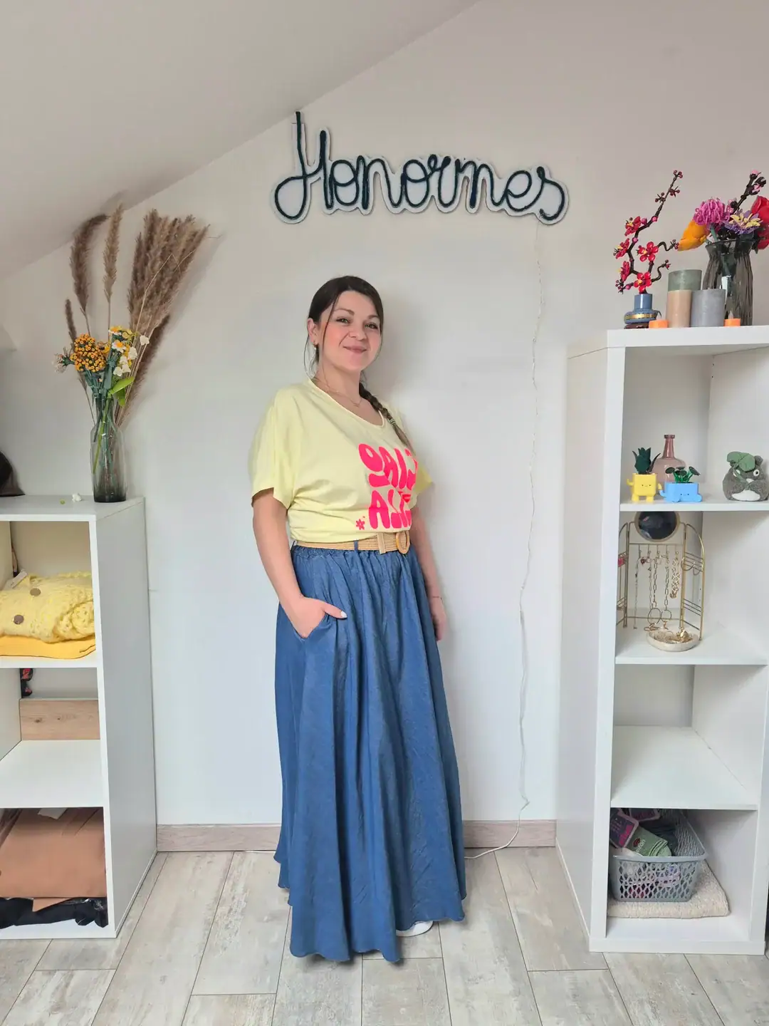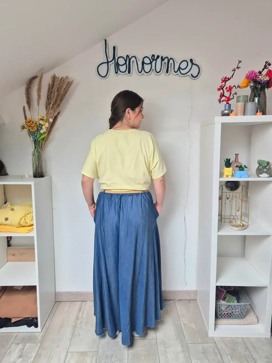 Dotée d’une taille élastiquée, cette jupe longue s’adapte parfaitement à votre morphologie tout en garantissant un confort optimal tout au long de la journée. Pratique et fonctionnelle, elle est équipée de poches discrètes intégrées dans les coutures côtés, parfaites pour garder vos essentiels à portée de main sans compromettre l’esthétique.