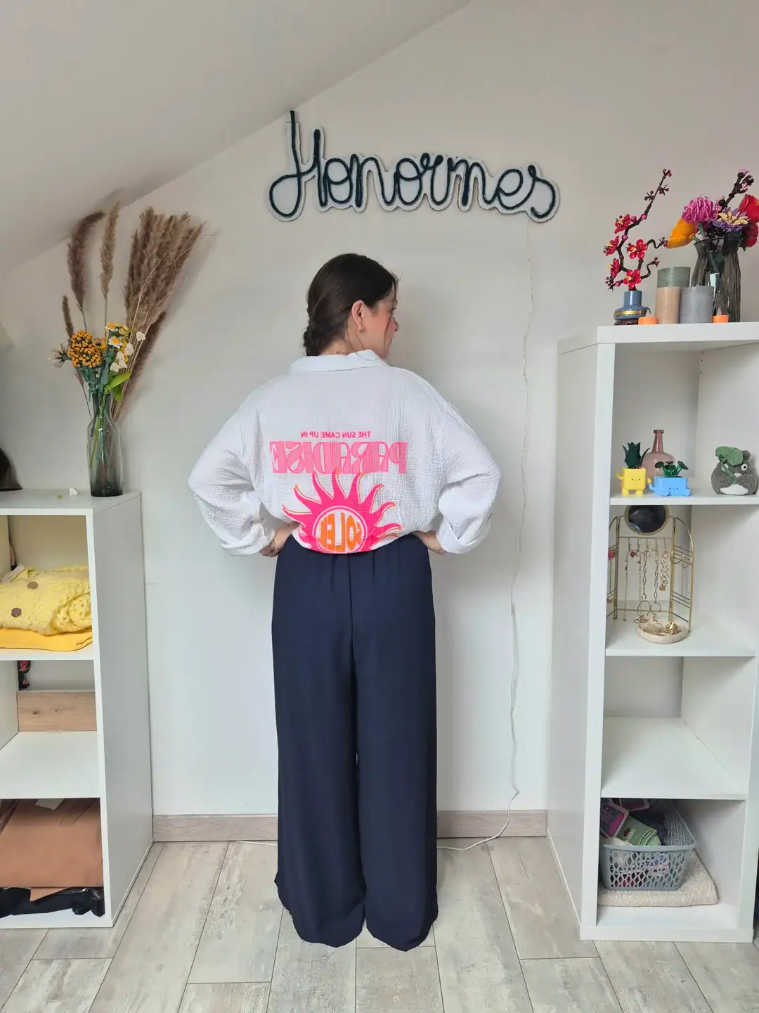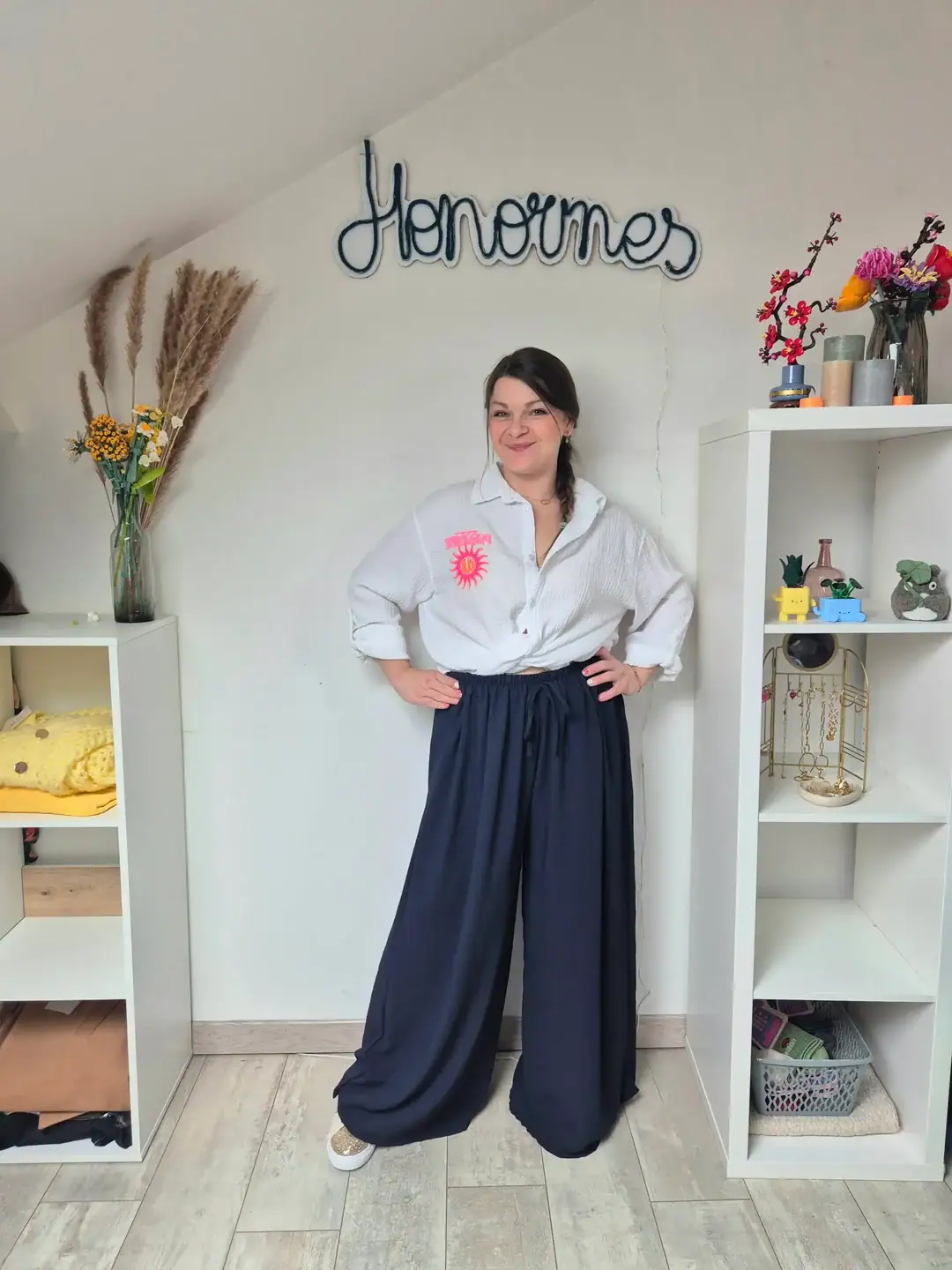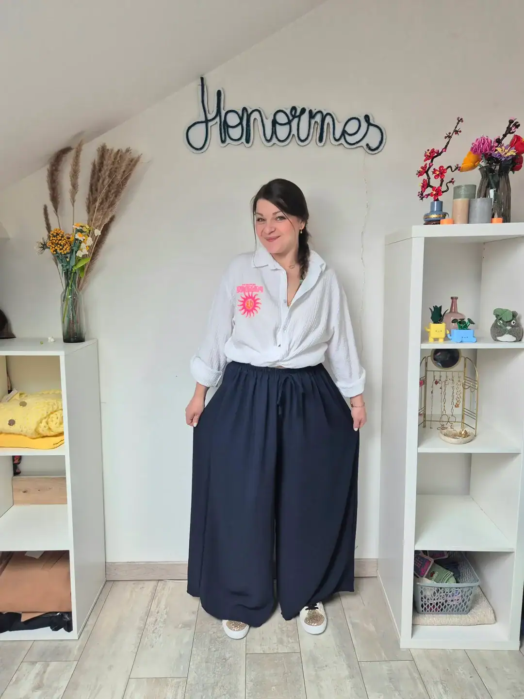 Parfait pour toutes les occasions, ce pantalon large femme grande taille deviendra rapidement un indispensable de votre garde-robe. Associez-le à un top ajusté ou une blouse fluide pour un look moderne et féminin.