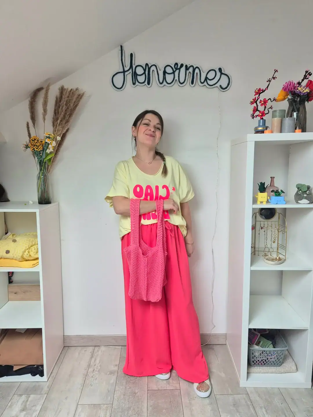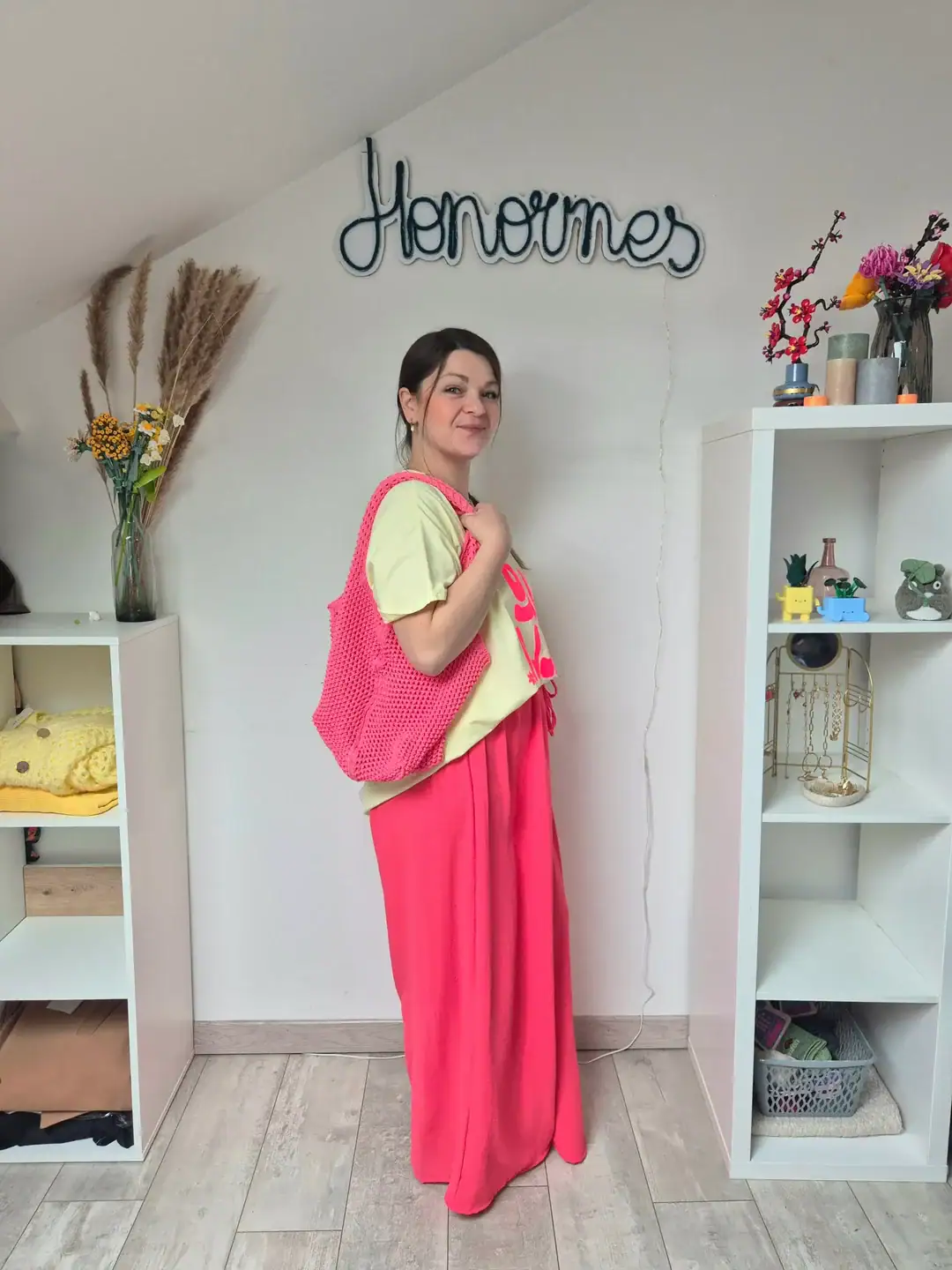 Spacieux et fonctionnel, ce sac en crochet permet de transporter facilement vos essentiels : portefeuille, téléphone, lunettes de soleil ou encore vos indispensables de la journée. Léger et résistant, il est parfait pour une utilisation quotidienne.