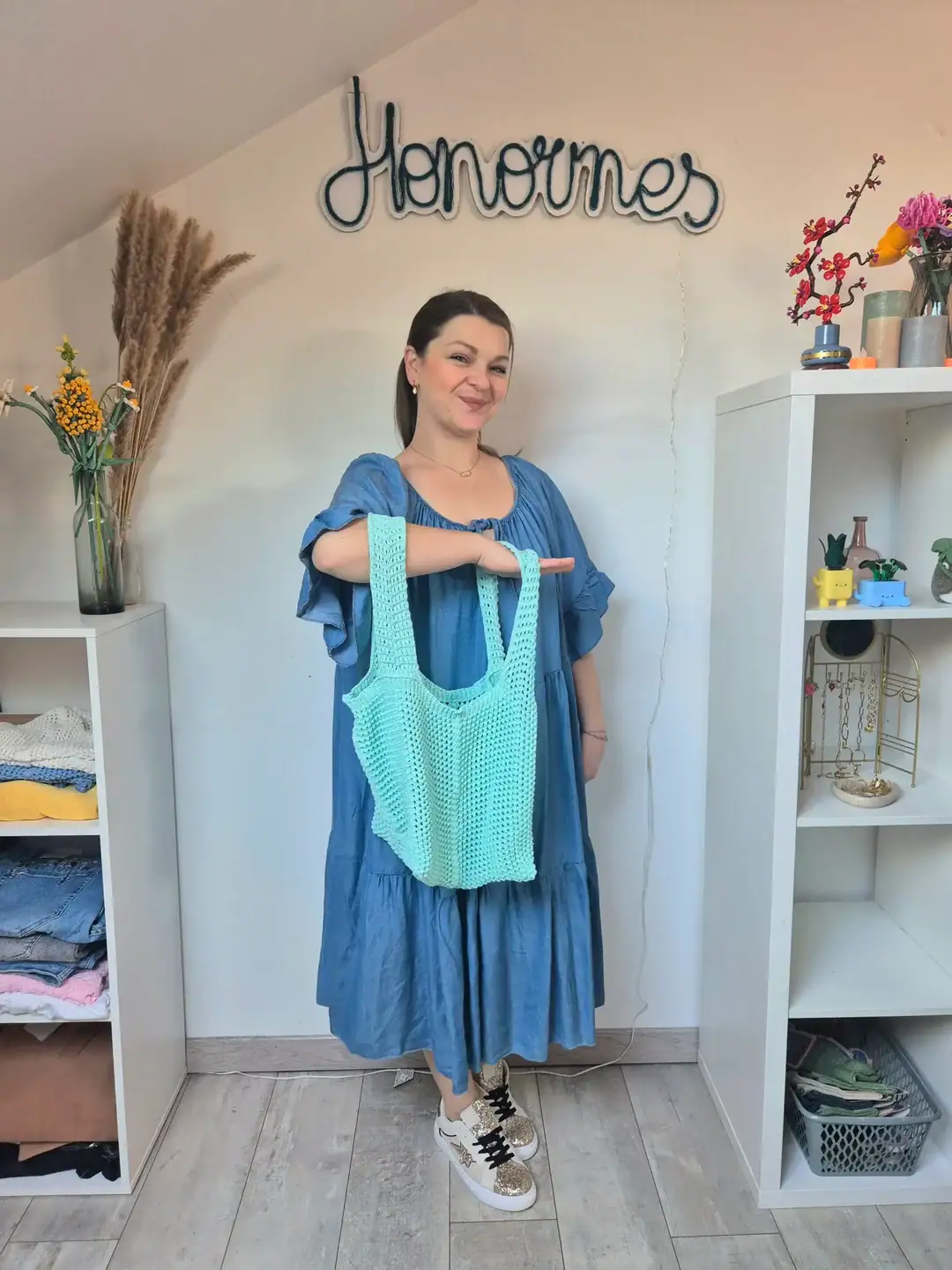 Spacieux et fonctionnel, ce sac en crochet permet de transporter facilement vos essentiels : portefeuille, téléphone, lunettes de soleil ou encore vos indispensables de la journée. Léger et résistant, il est parfait pour une utilisation quotidienne.