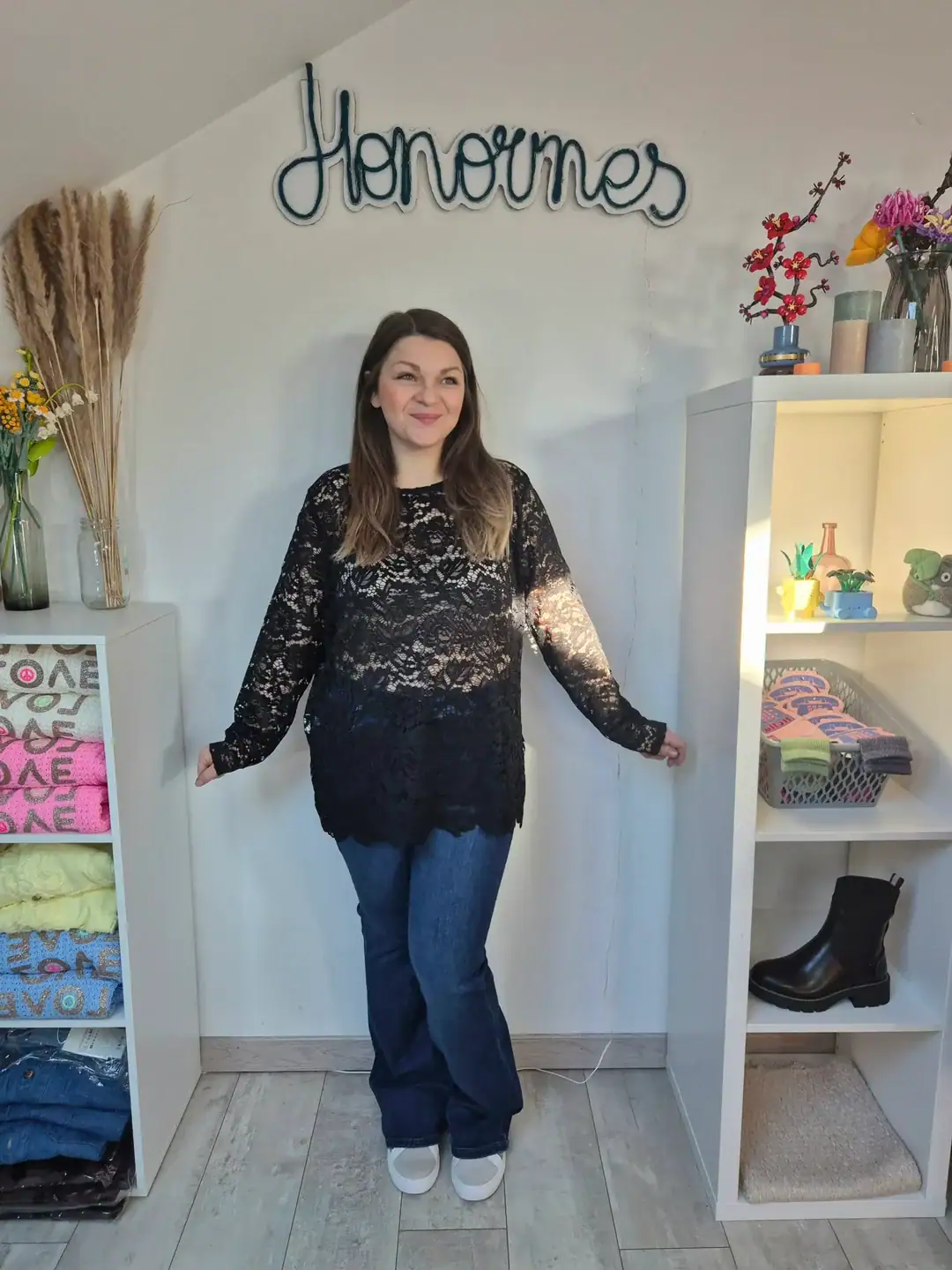 Sublimez votre silhouette avec ce top manche longue en dentelle grande taille, une pièce féminine et élégante pensée pour allier style et confort. Confectionné dans une matière très stretch, il épouse parfaitement les formes sans les contraindre, offrant une liberté de mouvement optimale tout au long de la journée.