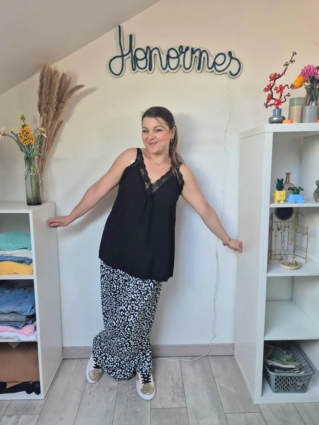 Sublimez votre silhouette avec ce débardeur grande taille femme ultra féminin et confortable. Conçu spécialement pour les morphologies généreuses, ce top allie élégance et bien-être grâce à sa coupe trapèze fluide qui épouse joliment les formes sans les serrer.
